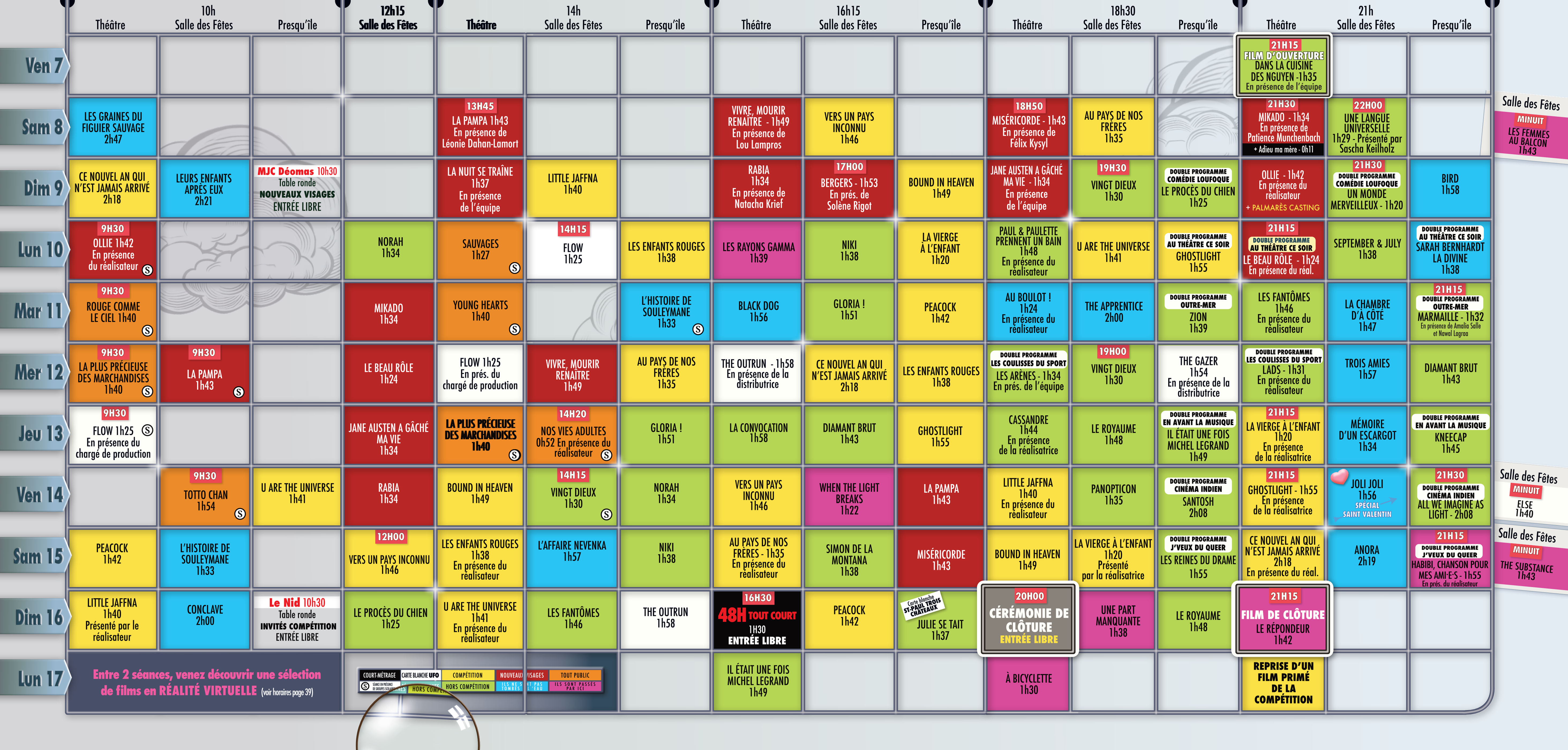 ATTENTION : il y a 2 inversions de salles depuis l’impression de la grille dans la brochure papier :