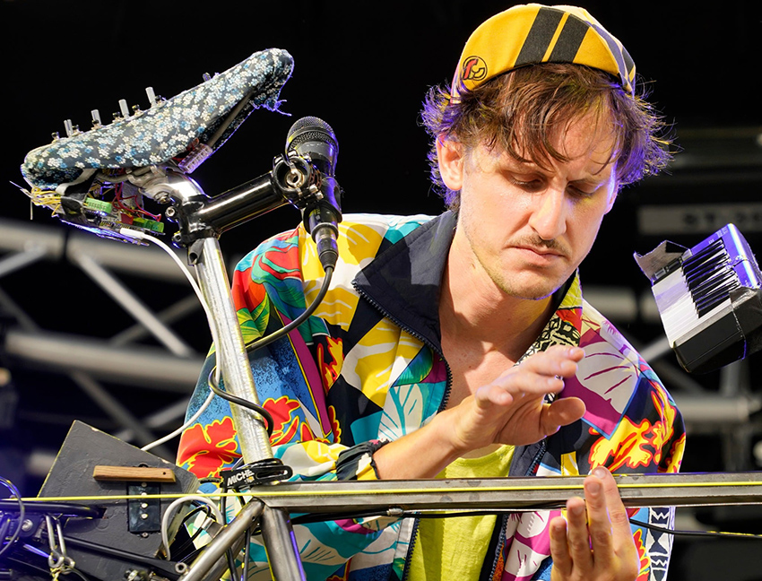 Vêtu d’une casquette de cycliste et d’un blouson bariolé, JOUBe artiste électro (de son vrai nom Romain Joubert) arpente les routes de France et de Belgique sur une drôle de machine. Au premier abord, elle ressemble à un vélo ordinaire mais l’énorme micro qui dépasse des sacoches laisse présager d’autres fonctions. Pendant quatre jours, il a accompagné une classe de 2nde Générale du Lycée Boissy d’Anglas pour créer une nouvelle bande son, les bruitages du court-métrage NEXT FLOOR réalisé par Denis Villeneuve.